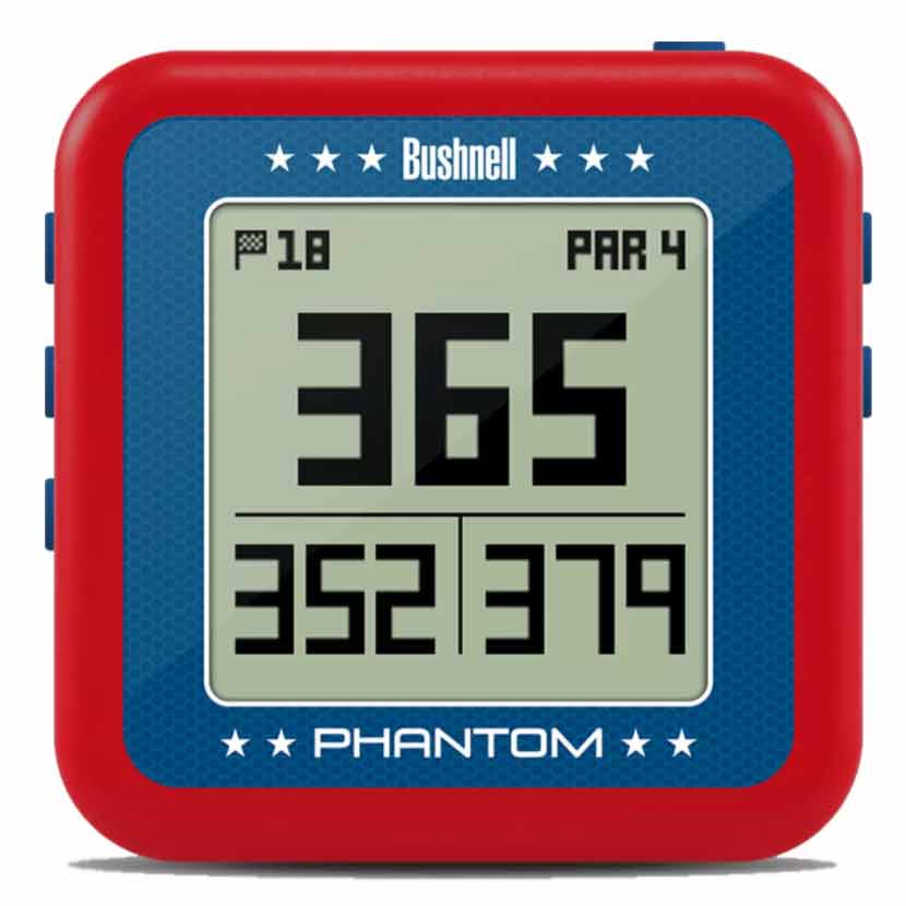 The Bushnell Phantom easily clips onto a bag or belt or it can be mounted to a cart or metal surface with BITE magnetic mount. The Phantom GPS is preloaded with 36,000+ courses in 30 countries, and will provide front, center and back distances.