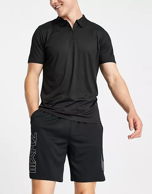 Threadbare Golf half zip polo in black