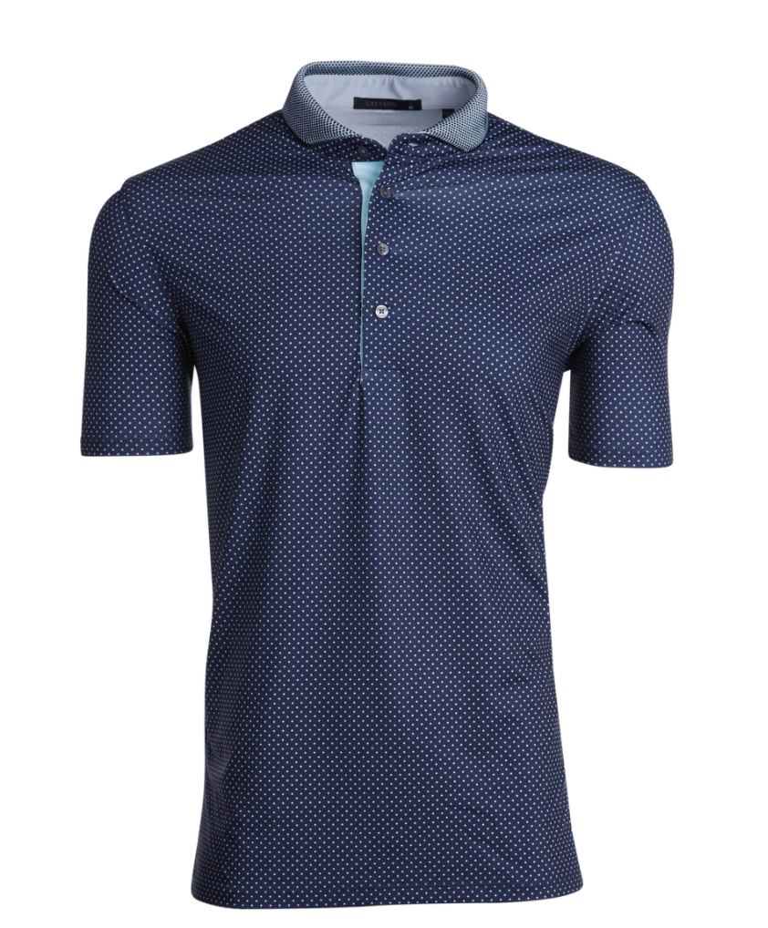 First up: Higgs, who is a Greyson man by heart. Harry wore Greyson’s Starling polo, a lightweight, stretch-friendly shirt featuring moisture-wicking technology and four buttons (in case you enjoy a breeze on your chest during play, like Higgs). The Starling polo, like everything Greyson, rests at the intersection of luxury and performance — a preferred choice of both serious players and fashion-forward golfers.