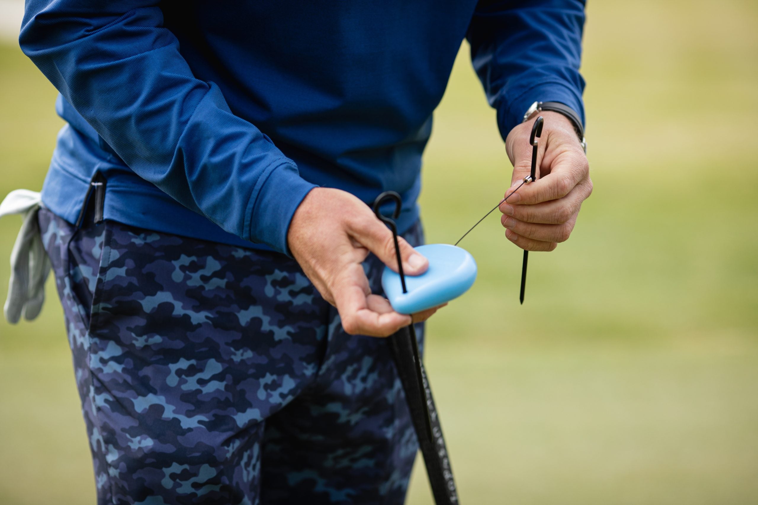 So, in partnership with Perfect Practice training aids (you may remember them from their putting mats) he developed the Raindrop a retractable-string model which eliminates that problem altogether and lets you get on with the actually-important stuff: practicing.