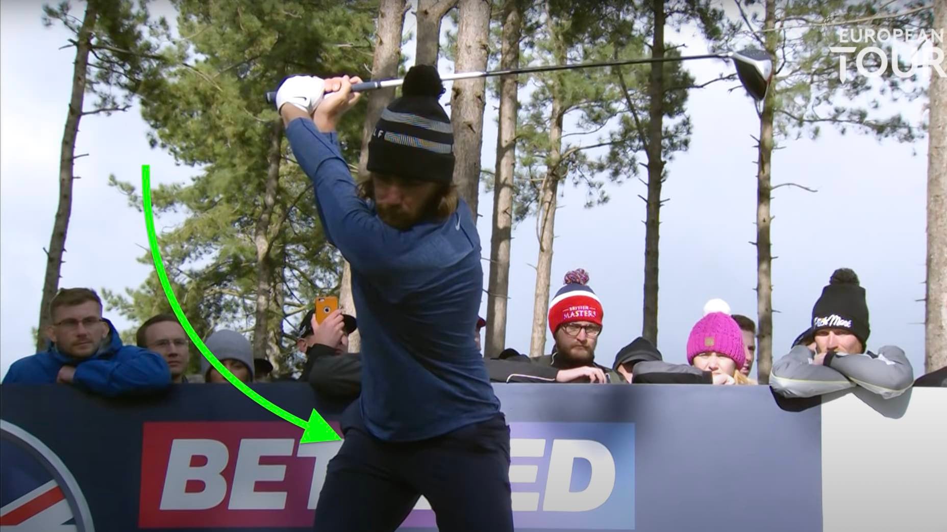 Using insights from the company’s new AI-driven Optimotion technology, Clearwater explains that a key separator in skill is that higher handicaps tend to sway off the ball on the backswing far more than lower handicaps and pros. One way of understanding if you’re doing this in your golf swing is to draw a circle around your head, and a line up your trail leg, while filming yourself face on.