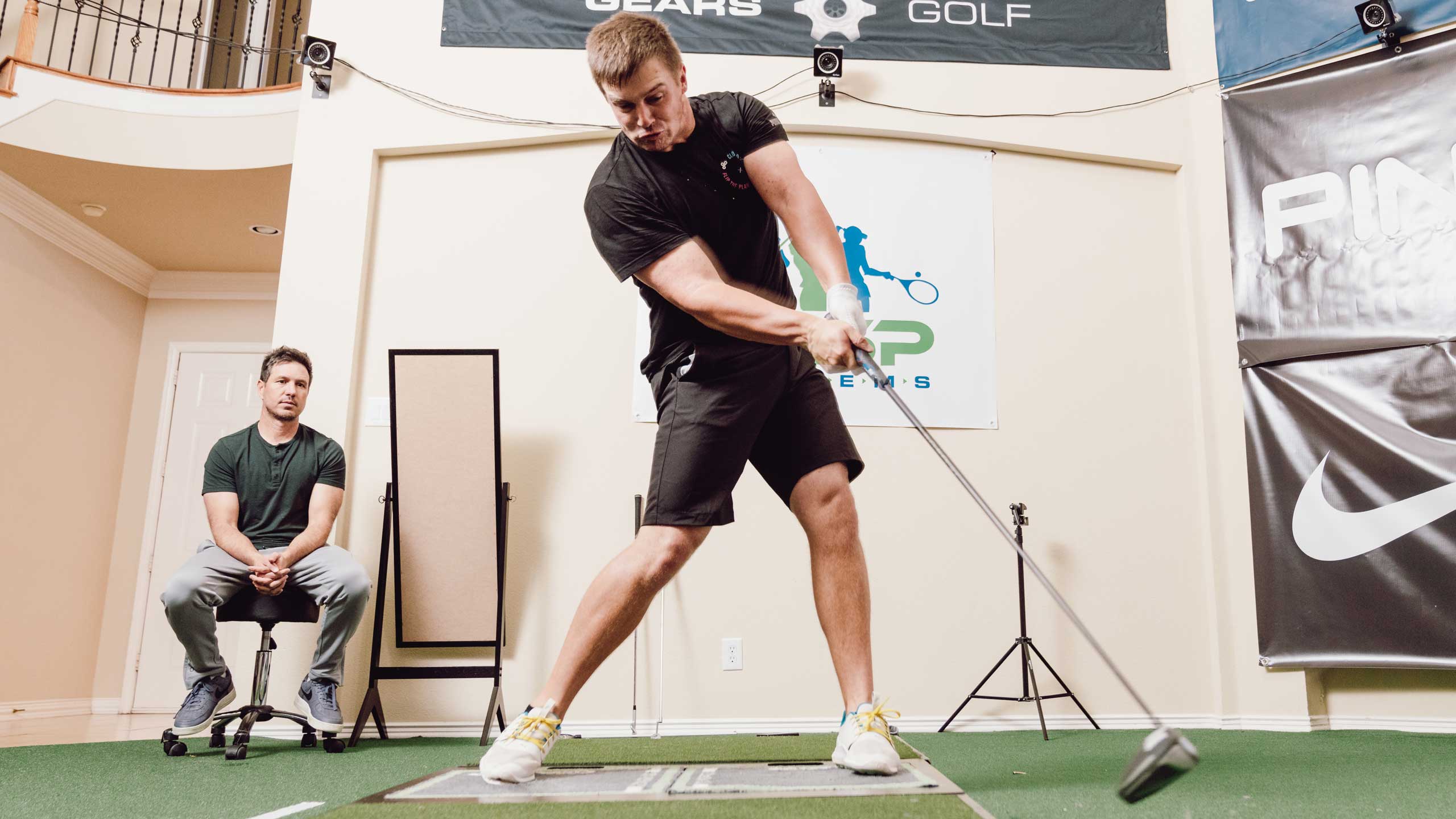 Even though just one man is doing the swinging, the entire group is grinding. Zeigler is manning the Trackman launch monitor system. Como is analyzing each swing, looking for discrepancies where speed is being ignored. Everyone is faux-doubting him, the man in the suburban arena. “Not a soul in this room thinks you can get to 215,” Zeigler chirps.