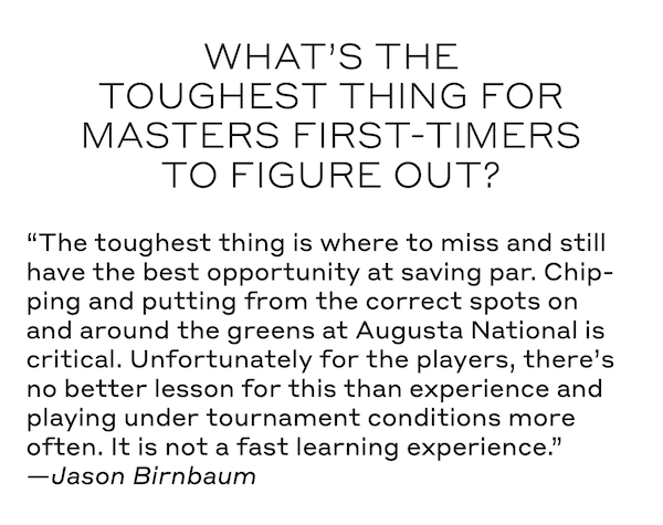 What’s the toughest thing for Masters’ first-timers to figure out?