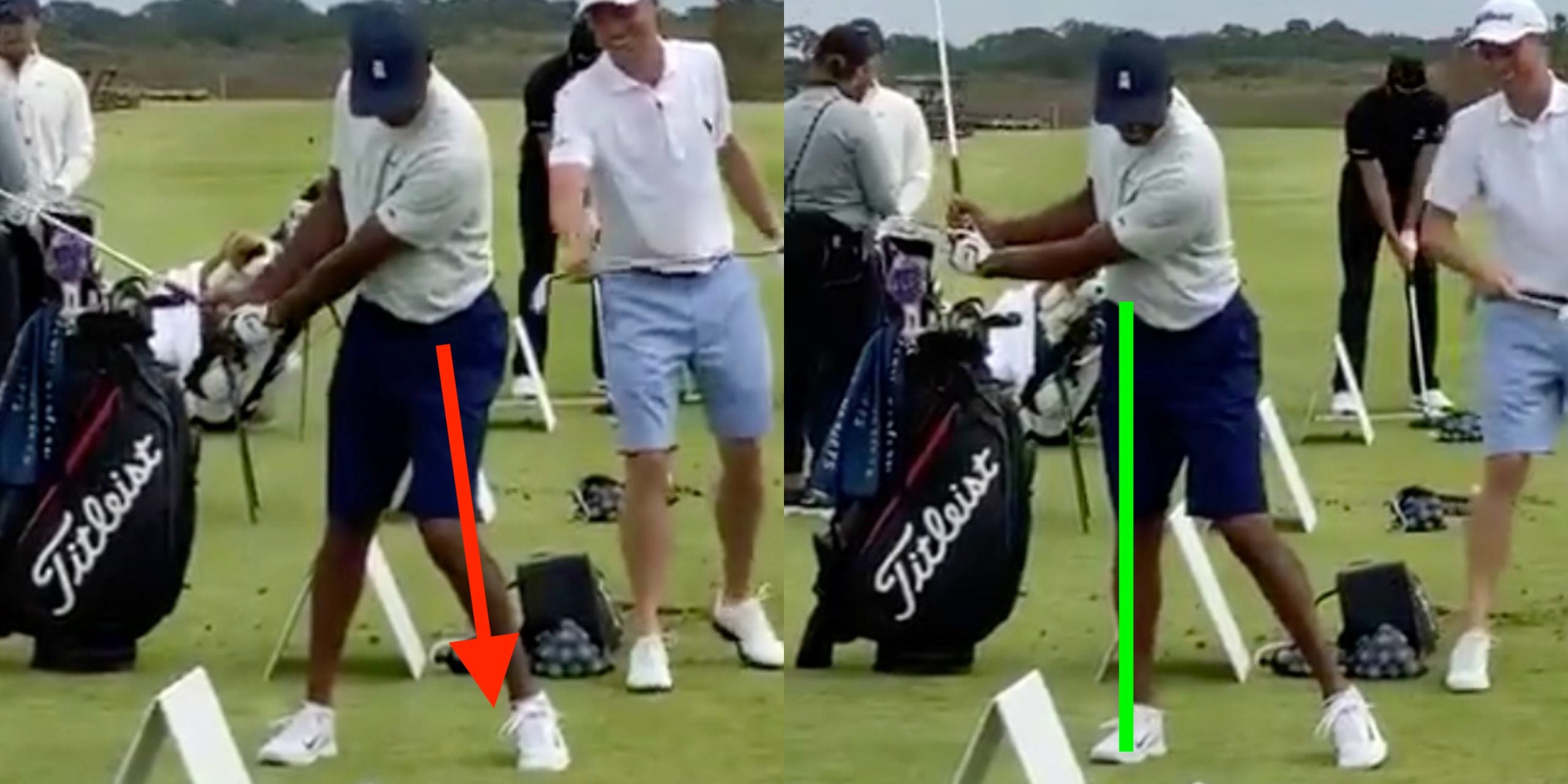 Before we get going and in all seriousness, I want to temper things a bit, because I didn’t see Tiger doing it on the course during Tuesday’s Payne’s Valley Cup. But he and Justin Thomas were on the range trying to hit balls while trying to lift their left heel off the ground.