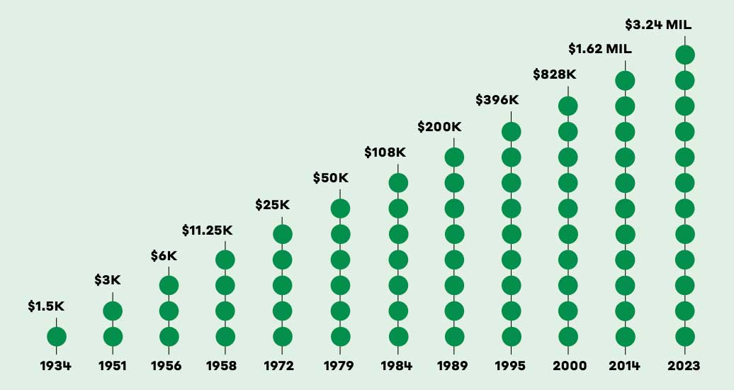 Tiger Woods banked $486K for his 1997 Masters win, while Jon Rahm took home $3.24 million last year. The most exponential period of Masters purse growth was in the 1980s and ’90s, when the winner’s share doubled about every five years.