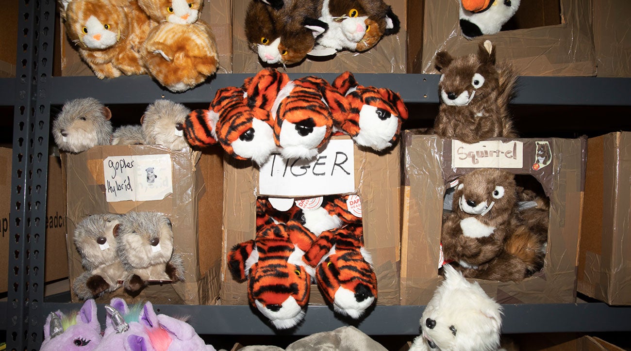 Over at Daphne’s Arizona headquarters, relics of his Masters win still hang on the walls. A Frank t-shirt is draped over the door to Spicer’s office. The hallways are lined with picture frames, plaques and reminders of everywhere the tiger headcover has traveled. It’s only once you walk past those mementos that you realize the true depth of Daphne’s headcover ecosystem. They make cougars, cats, quail, chimps and 25(!) different species of canines — the warehouse might as well be Noah’s Ark. Joining the tiger on Tour is Ernie Els’ lion and Padraig Harrington’s ladybug. And don’t forget about Craig Stadler’s walrus. Aaron Baddeley loves Daphne’s koala bear so much he even got involved in the design process. More than 200 elite professionals have carried Daphne’s headcovers throughout their careers.