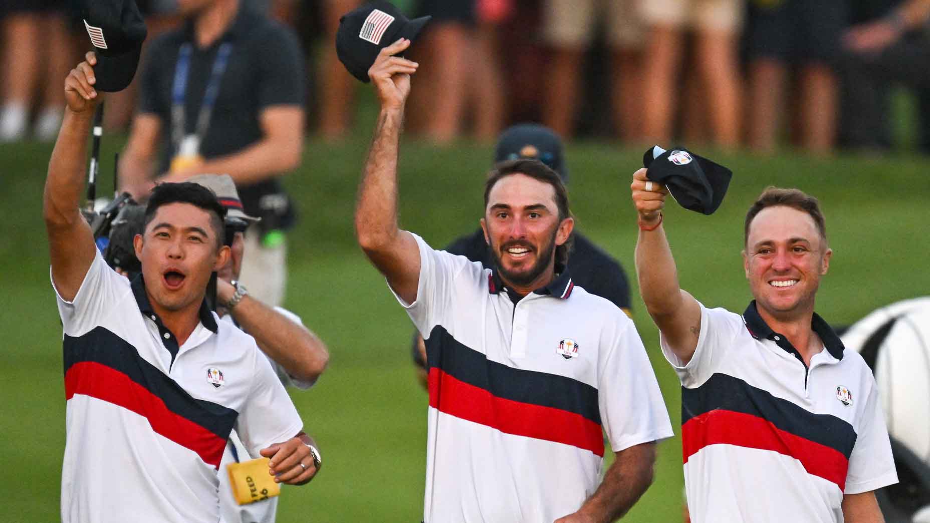 There were hats waving again when Cantlay’s birdie putt dropped on the 18th, silencing the European crowd and stunning his opponents Matt Fitzpatrick and Rory McIlroy. This time they belonged to Cantlay’s Ryder Cup teammates — Collin Morikawa, Max Homa, Justin Thomas and assistant captain Fred Couples among them — who had suddenly seized a slice of momentum large enough to feel.