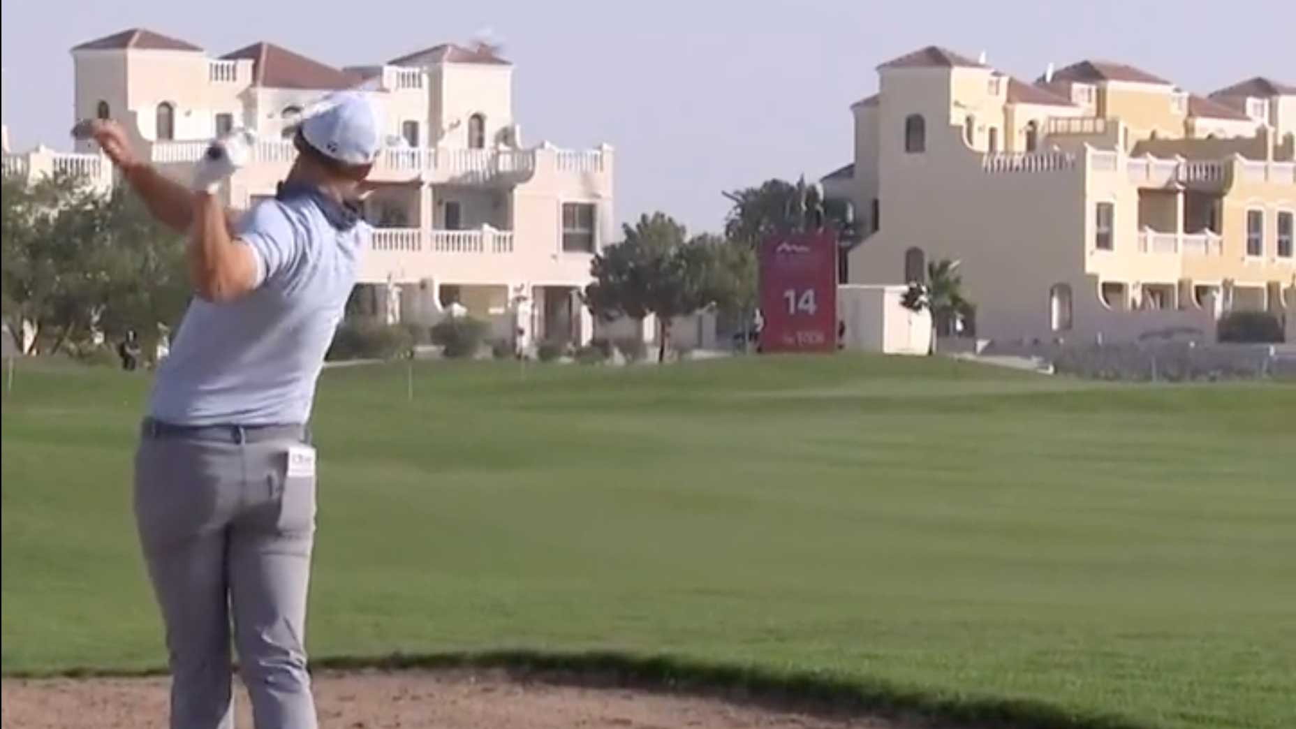 How best to describe this shot on the par-5 15th at Al Hamra Golf Club during Thursday’s first round of the DP World Tour’s Ras al Khaimah Championship?