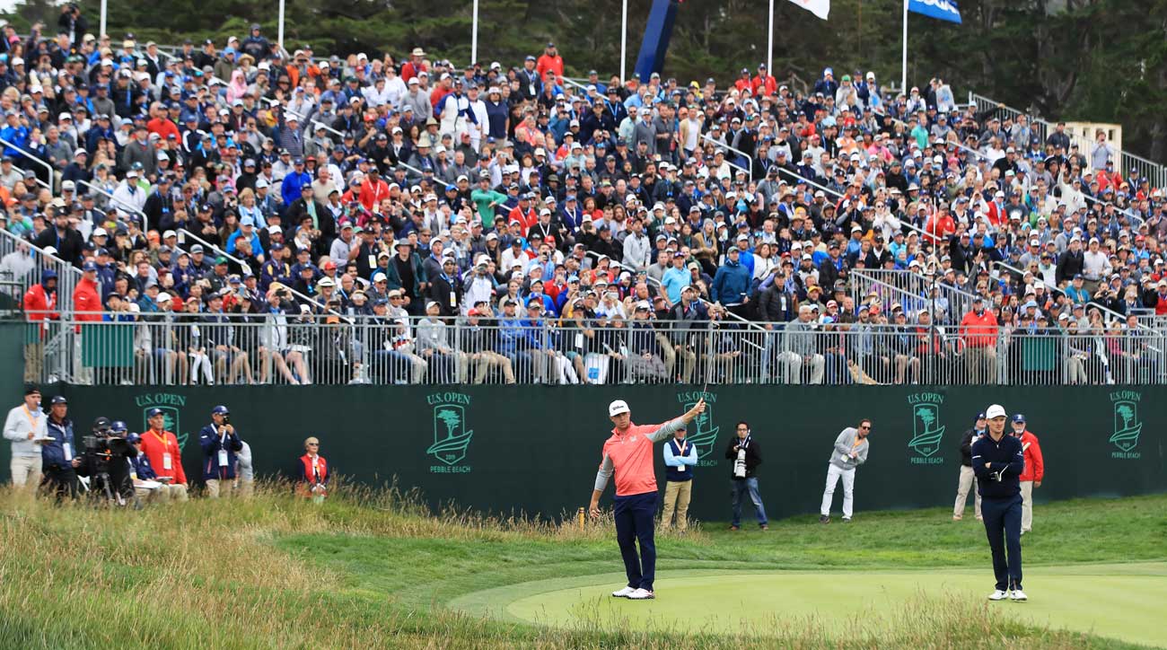 But one thing that was perfect was the 30-yard second-shot chip he played on the par-3 17th, from the green, on Sunday. That shot will go down as one of the Top 100 Clutch U.S. Open shots ever. We say that in part because had it gone wrong — it could have gone horribly wrong — it could have led to a career-defining double or worse. After all, it’s not like Woodland had had any experience playing delicate shots with golf’s most important title hanging in the balance. It also belongs in the Top 100 because he flat-out nailed it: a low, heel-up, toe-down, no-divot chip-pitch that left him with a tap-in par. It was the shot that won him the title. His playing partner, Justin Rose, the 2013 U.S. Open winner, gave him a fist bump. They both knew what it meant. It meant that Woodland could make a bogey on the last and still win. Instead, he made a birdie.
