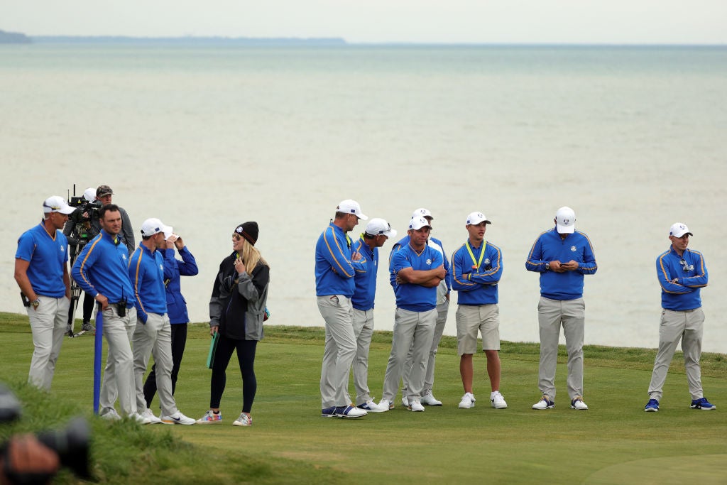 The exact departure time is obviously dependent on how long it takes players to get dressed and ready, but both teams are staying in hotels within Covid-compliant player bubbles. The U.S. team is staying at The American Club which, without traffic, is about 15 minutes from the course. But you don’t want to cut it too close. Traffic was so unexpectedly bad on Friday that multiple players, including Xander Schauffele, required a police escort to get to the course without delay.