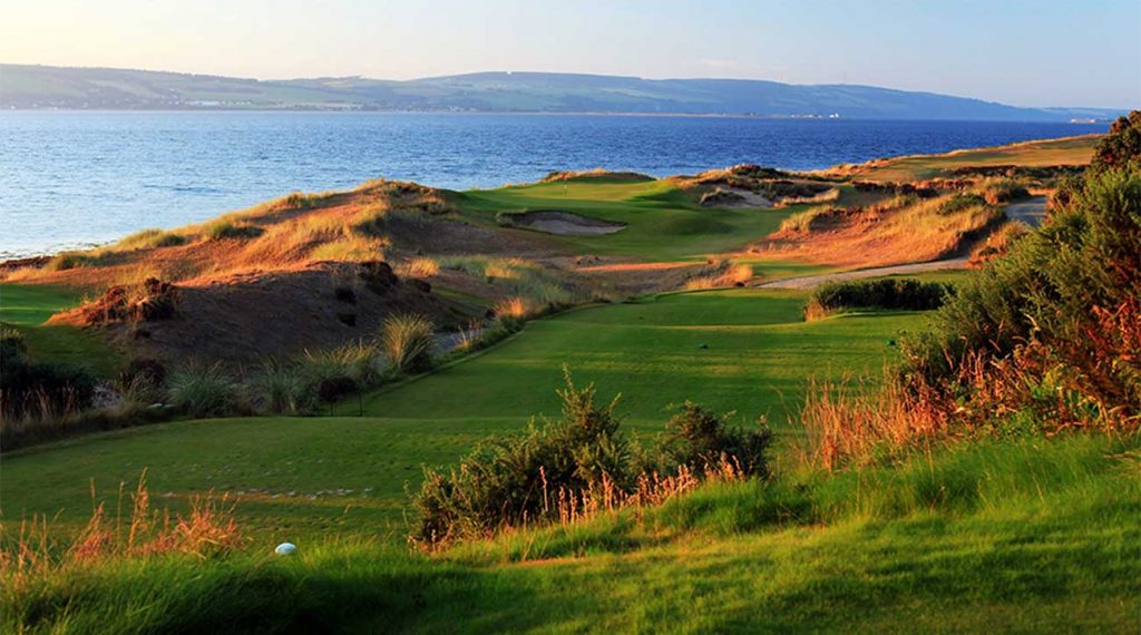 This 1999 Kyle Phillips design 15 miles from the Old Course has earned the respect of links fans, who can be a tough bunch as they generally travel to the United Kingdom to play courses that are 100-plus years old. There is much to admire here, including the 606-yard, par-5 12th, which arcs around the bay, and the 212-yard, par-3 15th that demands a carry over the sea. Others might relish the shelf green at the 9th that poses similar intriguing questions as the 12th at the Old Course. Kudos to Phillips as the seamless melding of flat farmland and Old World links contours is quite the design accomplishment. (Photo: Courtesy Kingsbarns)