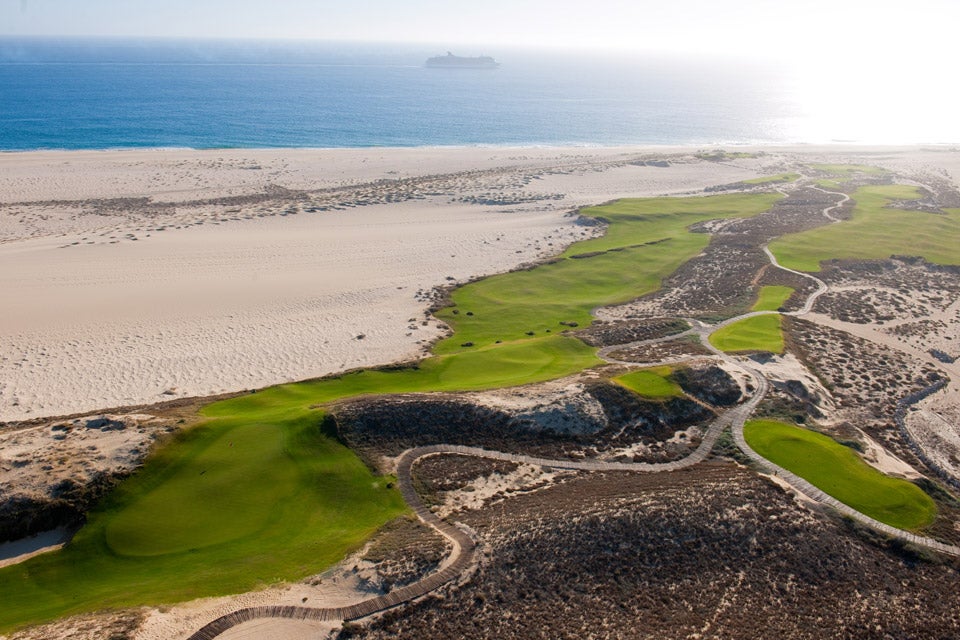 Diamante’s free-form architecture rests gently on the land, and the absence of any hard lines let the golfer’s eye soak in the delightful contrast between the dazzling Pacific Ocean, the dunescape and the emerald playing surfaces. The Dunes’ random green contours are noteworthy as is the construction technique that left micro-undulations in the fairways. Spectacular ocean views sometimes come with the price of cold and damp playing conditions but not here. (Photo: Brian Morgan)